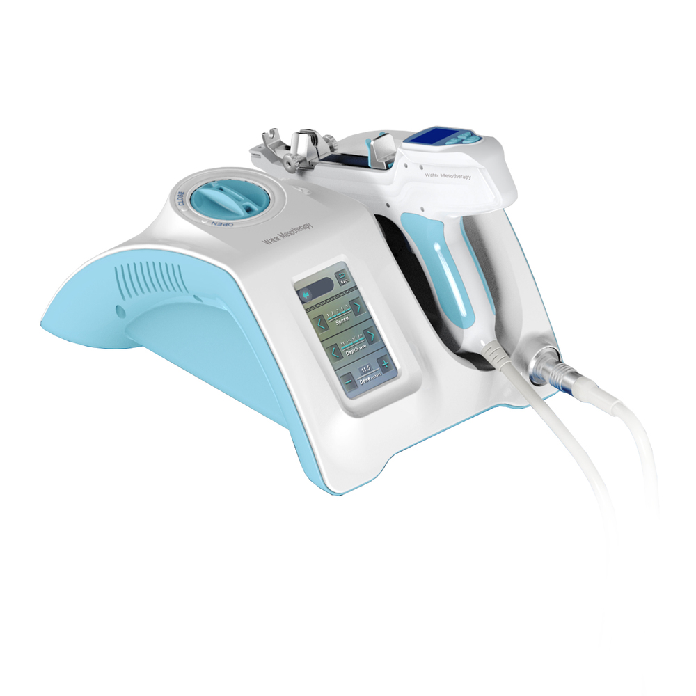 Multi-jehličkový systém. Několik velmi tenkých jehliček vpichuje sérum do přesně nastavené hloubky. Automatická regulace dávky – každé stlačení/aplikace vpraví stejné množství účinné látky. Kontrola hloubky vpichu (obvykle 0,2–5 mm) podle oblasti obličeje nebo těla. Minimalizace bolesti a otoků díky rychlé a rovnoměrné aplikaci.Bezpečnější a efektivnější než manuální mezoterapie – menší riziko chyb v dávkování.